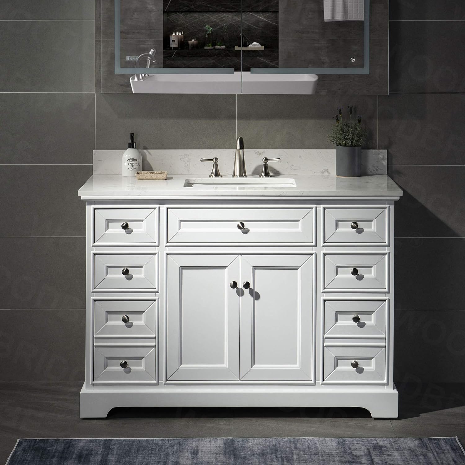 White Vanity Grey Top : Home Decorators Collection Ellia 48 Inch Vanity In Grey With White Carrera Top The Home Depot Canada : Each vanity is styled to the most current trends, are crafted from solid hardwoods, engineered wood and quartz, granite or marble tops.. A cultured granite vanity top can add perfect style to your decor. Enhance your bedroom with makeup vanity sets, bedroom vanities to add storage, style at homary.com. This kind of white marble countertop can be used for hotel, and. Black galaxy, g603 grey, g664, g682 rustic tan, g611 almond mauve, g654 padang grey, g684 pearl black Now free shipping on all bathroom vanities.