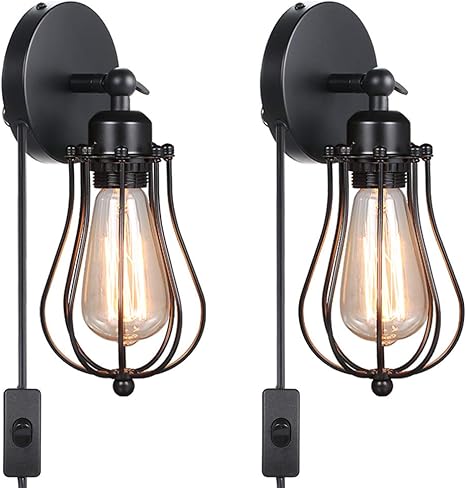 Lynpon 2 pack gooseneck barn wall light, industrial wall sconce light, dimmable vintage wall lamps, rustic black iron lighting for bedroom living room loft 4.2 out of 5 stars 30 £42.99 £ 42. Industrial plug in wall light e26 base edison wire cage style vintage wall lights with 5.9ft adjustable plug in cord rustic wall sconce fixture for headboard bedroom porch bathroom 2 pack. Amazon's choice for industrial wall lights. Bath bar lighting is usually over the vanity and mirror and has two to five separate bulbs. The streamline silhouette sits tight to the wall, yet provides abundant light.